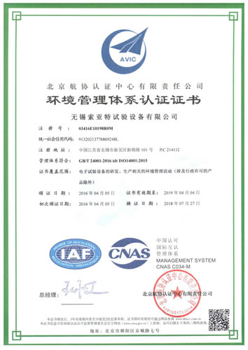 質(zhì)量管理體系認(rèn)證證書(shū)(GB/T24001-2004)